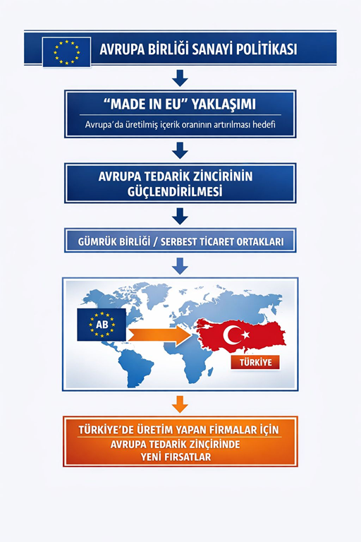 Bu çerçevede, Türkiye ile Avrupa Birliği arasındaki Gümrük Birliği ilişkisi dikkate alındığında, Türkiye’de gerçekleştirilen üretimin Avrupa tedarik zincirleri içerisindeki rolünün daha da önem kazanabileceği değerlendirilmektedir. Özellikle Avrupa pazarına yönelik üretim yapan firmalar açısından söz konusu gelişmenin yakından takip edilmesinde fayda bulunmaktadır.